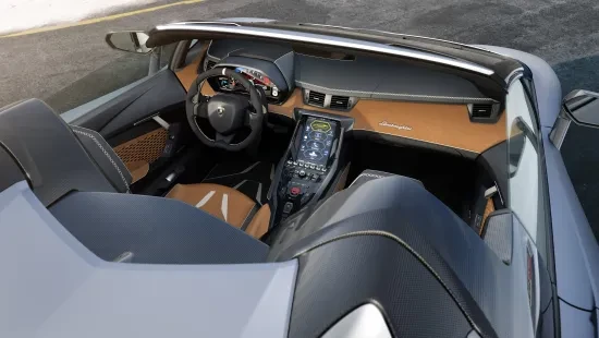 De afgebeelde Centenario Roadster heeft een subtiel en luxueus interieur in lichtbruin ‘Terra di California’ met witte ‘Bianco Polar’ lederen details. Elk detail is onder de loep genomen om bij te dragen aan maximaal rijplezier, ook het comfort in het interieur. Optimale vorm en functie werd bereikt door het plaatsen van een luchtkanaal in de achterwand in de achterkant van de hoofdsteunen, zodat de lucht soepel van de cabine naar de achterkant van de motorkap kan stromen en de turbulentie in de inzittendenruimte wordt geminimaliseerd. De achtervleugel profiteert dan van extra lucht voor meer downforce achter.